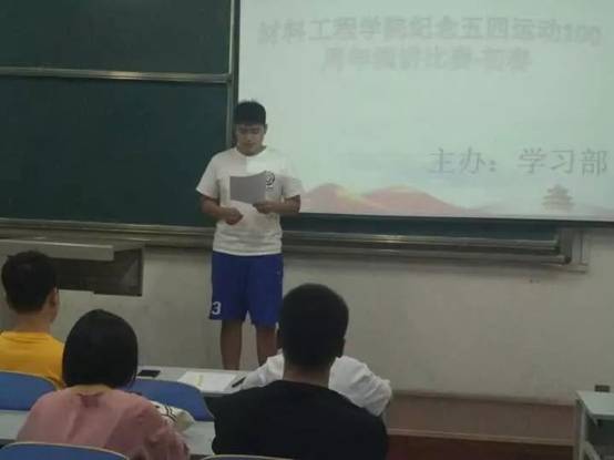 为了激发世界杯体育学生的爱国情怀,激励学生刻苦学习,2019年5月22日晚世界杯体育于阎科楼172教室举办“纪念五四”演讲比赛,此次活动由团学会学习部主办,世界杯体育19名大一学生参赛,团学会四位部门部长担任评委。