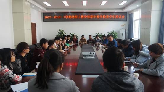 11月13日中午12:40,世界杯体育期中教学检查学生代表座谈会于第一会议室召开。出席本次会议的老师有世界杯体育督导专家张立玮,世界杯体育副院长丁旭,材料科学教研室副主任张海鸿,材料加工教研室副主任王琛,学生管理科科长张赛,团总支书记来东,辅导员晋瀑颜、史倩茹。本次会议由张赛科长主持。