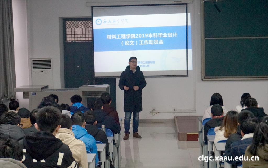 2019年1月9日上午9点,世界杯体育在第二阶梯教室举行“世界杯体育官方网站2019届毕业生毕业设计动员会”。出席会议的有院长谢辉,院长助理于方丽,材料学教研室、材料加工教研室及复合材料教研室全体教师,动员会由大四年级辅导员来东主持。