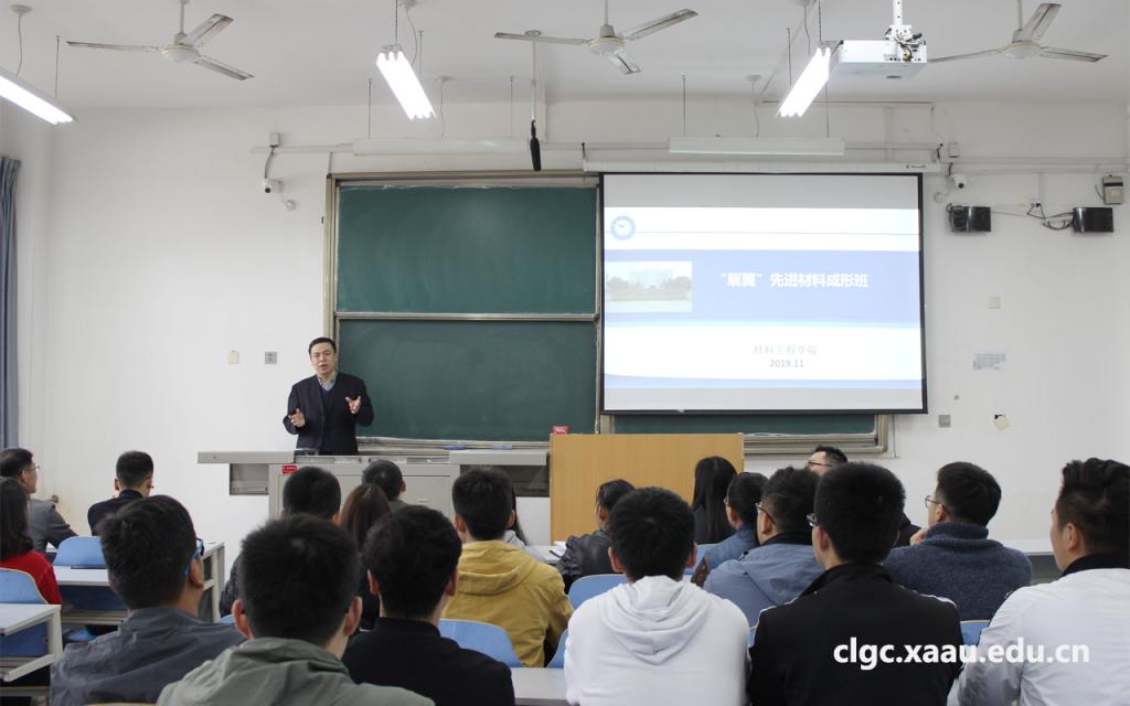 王琛对“展翼”班的创建背景和培养模式进行了介绍。该班以国家创新驱动发展战略要求为出发点,以“材料创新,设计创新,成形创新”为主线,以运用先进材料和先进成形技术制造出飞机模型为落脚点,在不影响学生正常教学活动的情况下,利用课余时间集中进行培训辅导,培养学生的创新系统思维能力和工程实践能力。她指出“展翼”班是师生交流的一个平台,是传播创新思维的一个阵地,是创新培养模式的一种探索。