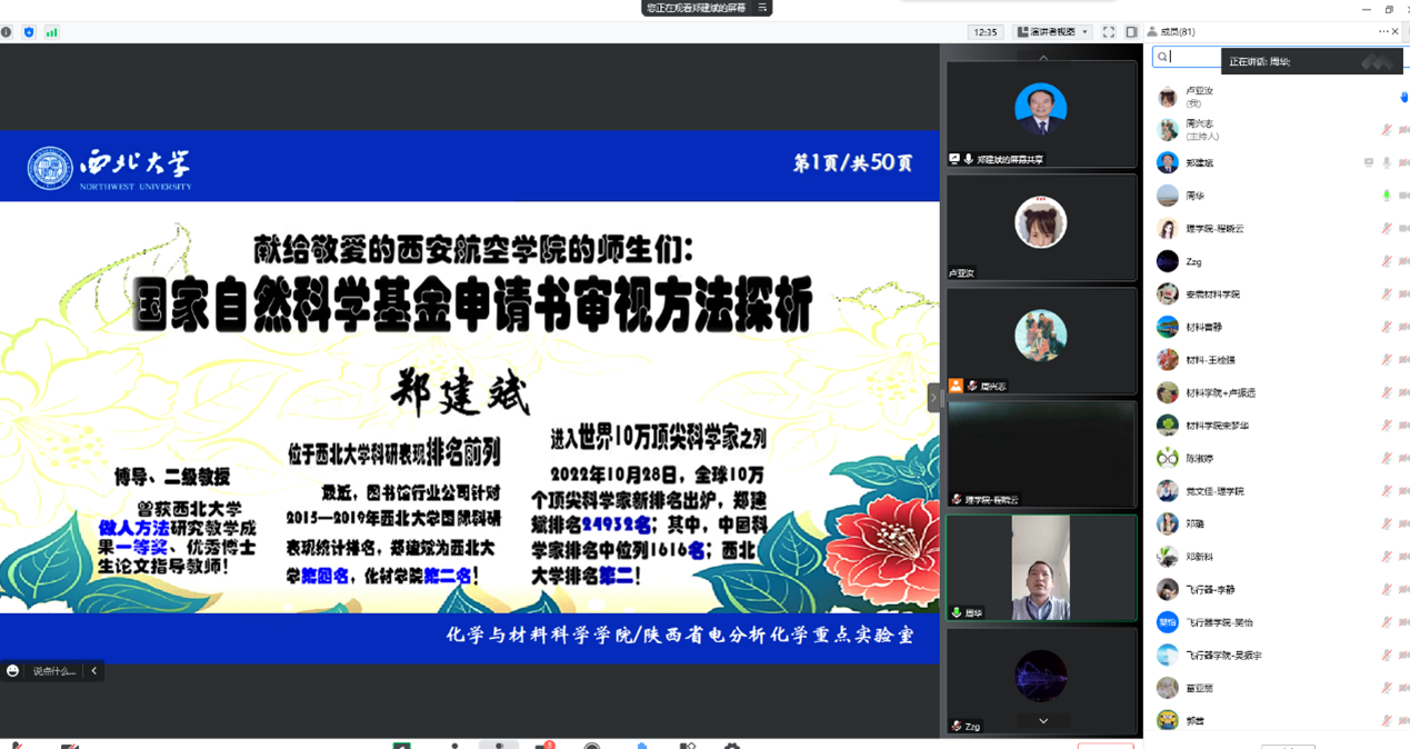 2022年12月16日下午14:00,世界杯体育官方网站召开国家自然基金申报动员大会,并邀请西北大学郑建斌教授作《国家自然科学基金申请书的审视方法探析》线上讲座。