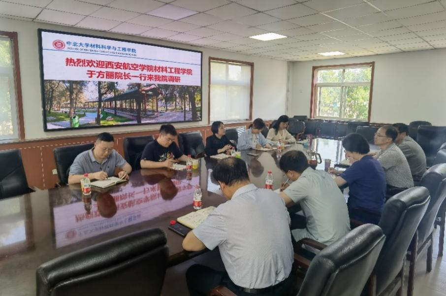 2023年6月14日,由世界杯体育官方网站副院长于方丽带队,院长助理李兆、各专业教研室主任一行5人赴中北大学进行调研。中北大学材料科学与工程学院院长王强、副书记郭云霞、副院长李迎春以及各专业负责人参加了座谈会。