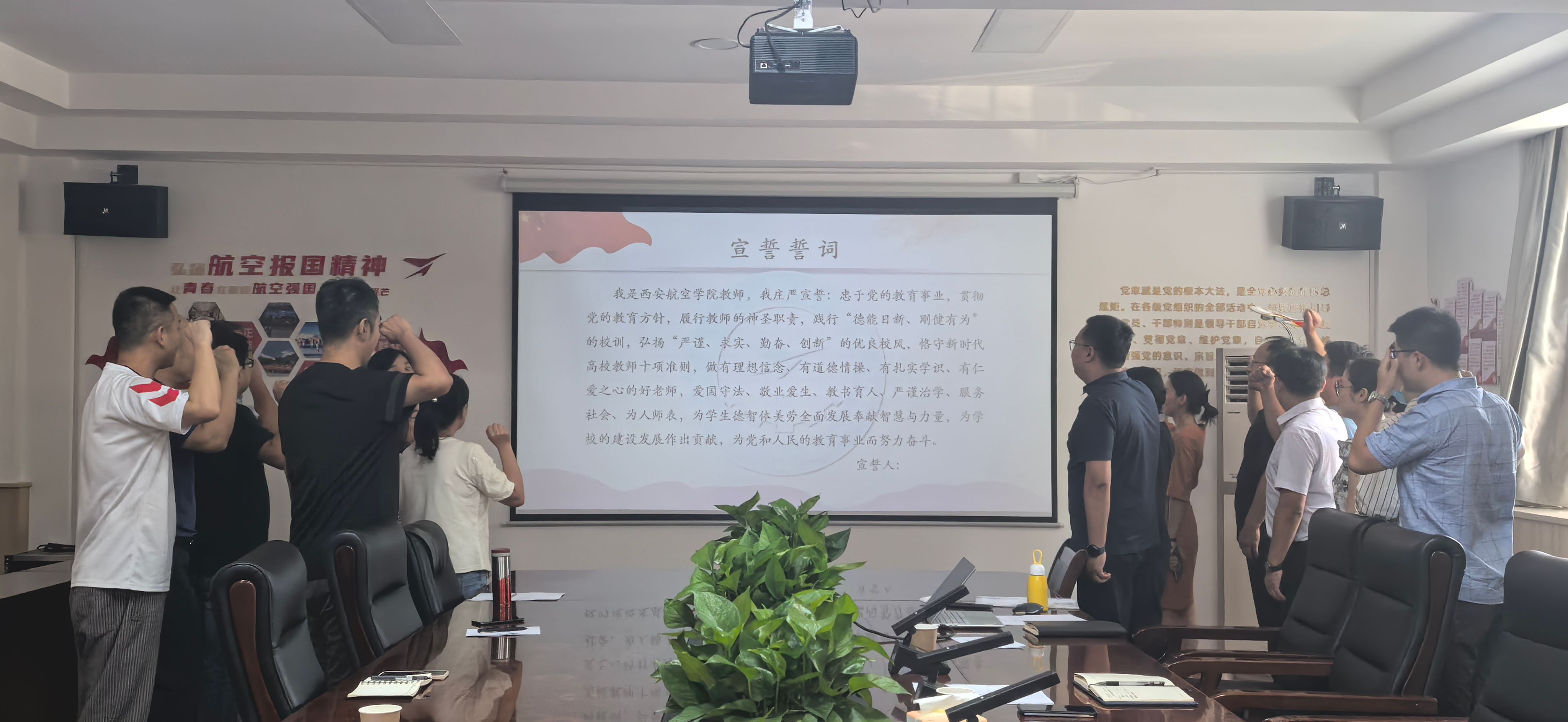 最后,全体教师在鲁媛媛老师的带领下进行教师节宣誓承诺活动,承诺潜心教书育人,落实立德树人。