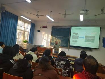 然后,由胡成西老师带来的隐身涂层的制备及在军事装备中的应用也同样令学生受益匪浅。胡老师对隐身技术的发展娓娓道来,同学们听得津津有味,对隐身材料有了一个初步的认识。