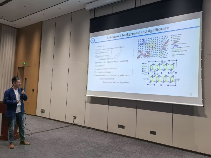 会议期间,谢辉作为分会主席主持了多场专题研讨,其学术领导力与国际视野受到广泛认可,进一步巩固了世界杯体育官方网站在轻金属材料领域的学术地位。李鑫在分会中作题为《Performance Optimization of Directional Solidified Mg-Based Thermoelectric Single Crystals》的邀请报告,系统介绍了团队在镁基材料制备工艺与性能调控方面的突破性进展。该研究通过优化定向凝固技术,显著提升了镁基单晶的热电转换效率,为航空轻量化与能源材料领域提供了新思路,引发与会专家的高度关注与热烈讨论。