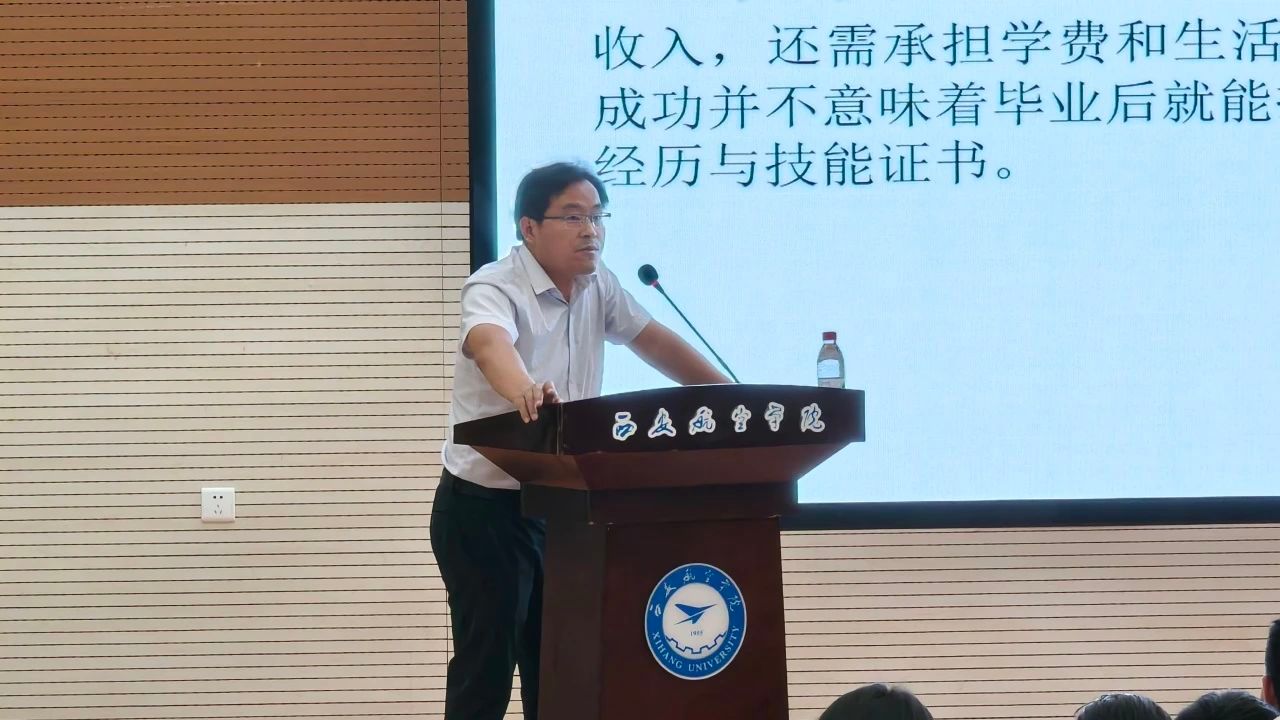 党总支副书记高均立通过详实的数据和案例,介绍学院近三年就业、考研情况,为大家后续的选择提供了有力参考。