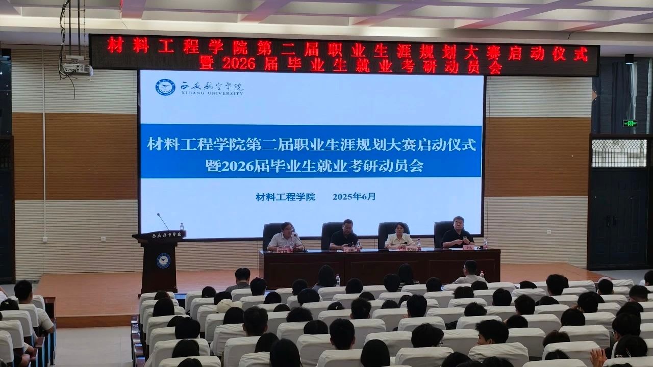 6月3日,世界杯体育官方网站在阎良校区报告厅成功举办了第二届职业生涯规划大赛启动仪式暨2026届毕业生就业考研动员会。学院党总支书记严碧峰、院长于方丽、副院长李兆、学工办主任雒亚男、全体辅导员出席,2026届全体学生、2023级、2024级学生代表、学生会代表各年级班干部、团学会成员近400人参加,会议由党总支副书记高均立主持。
