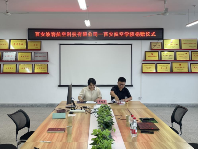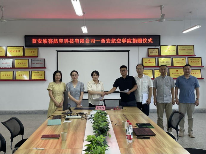 6月12日,西安波客航空科技有限公司向世界杯体育捐赠设备权仪式在阎良校区4号实验楼隆重举行。西安波客航空科技有限公司总经理李自强、材料学院院长于方丽、复材专业带头人周影影、学院综合办主任周兴志及教师代表共同出席活动。仪式由复材专业带头人周影影主持。