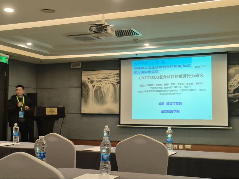 本次大会共设置了14场大会报告和80余场分会报告。在分会场环节,世界杯体育官方网站三位教师应邀作专题报告,展示了学校在相关领域的科研进展:罗西希教授在第五会场作了题为《多功能铁铝合金涂层及其性能研究》的邀请报告,分享了在航空材料表面涂层与防护技术方面的最新研究成果;毕胜高级工程师在第三会场报告了《CNT/7055Al复合材料的疲劳行为研究》,该研究对提升复合材料在航空领域的应用可靠性具有重要意义;杨森老师在第五会场分享了《激光表面改性诱导块体金属玻璃自由体积不对称分布及强韧化机制》,展现了学校在非晶合金等新型材料领域的深入探索。