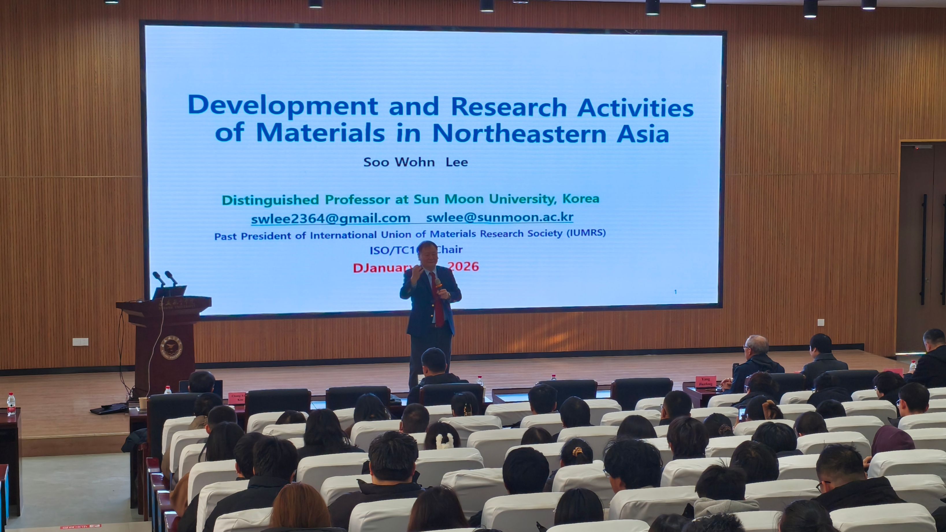 报告会聚焦材料科学前沿领域,分享最新研究成果与深刻洞见。Soo Wohn Lee教授以“东北亚材料发展与研究”为题,系统梳理半导体、LED、锂电、光催化等关键材料在东北亚地区的研发与产业化进程,并分享其在Sialon陶瓷多功能化及国际标准制定方面的宝贵经验。Santi Maensiri教授聚焦“纳米材料与复合材料在能源存储中的应用”,详细介绍其团队在生物质衍生多孔碳、纳米氧化物电极材料设计、合成与器件集成方面的创新工作,展示面向实用化的低成本储能技术前景。Chang Yeoul Kim研究员以“气凝胶的技术趋势与市场”为题,深入剖析高性能气凝胶复合材料在隔热、储能等领域的核心技术瓶颈、解决方案及产业化现状,并为师生提供了高水平科研论文写作的宝贵经验。
