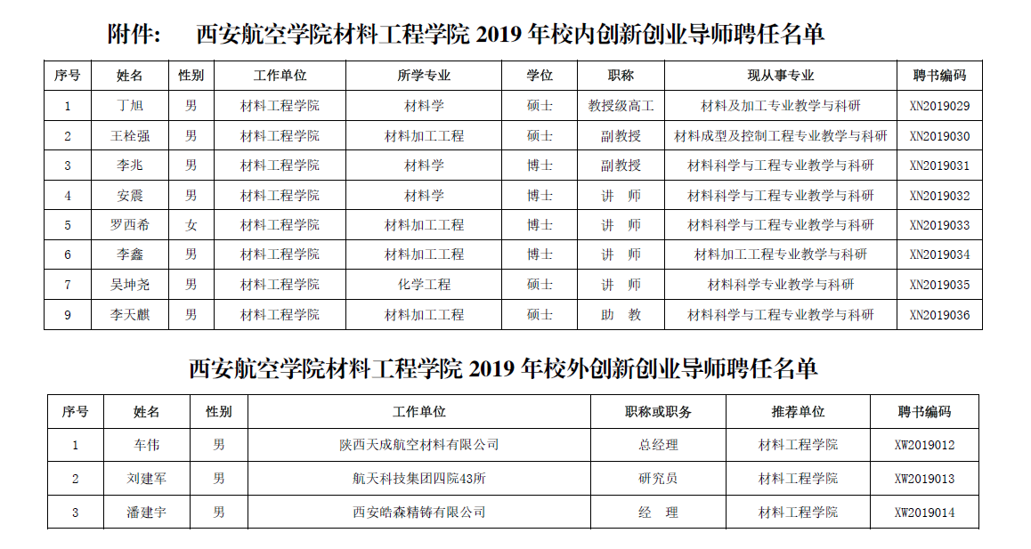 经个人申报、二级单位审核推荐、学校创新创业教育指导委员会复审,报学校研究同意,现聘任世界杯体育9名专任教师为创新创业导师、3名校外人员为校外创新创业导师,聘期为2019年6月1日至2021年5月31日。具体结果见附件。