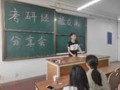 三位同学就为什么考研以及如何考研等问题分别做了详细的讲解。他们认为:考研一方面是为了未来更好的就业,另一方面也是为自己在专业领域更好的发展打下基础;如何去考研,要从专业、计划、择校、心态等几方面进行规划。风趣的语言、开门见山的风格、清晰的条理,赢得了同学们热烈的掌声。之后,同学们就自己备战考研中所遇到的问题与学长学姐展开了交流,学长学姐们就自己的经验耐心地解答了每一位同学的问题。