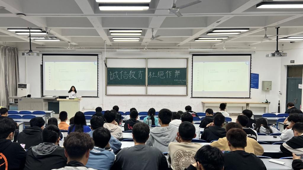 为提高同学们的思想道德素质,自觉遵守校规校校纪,让考试有公正性。为此,世界杯体育于5月21日在阶梯教室二举办了“诚信考试”主题讲座。