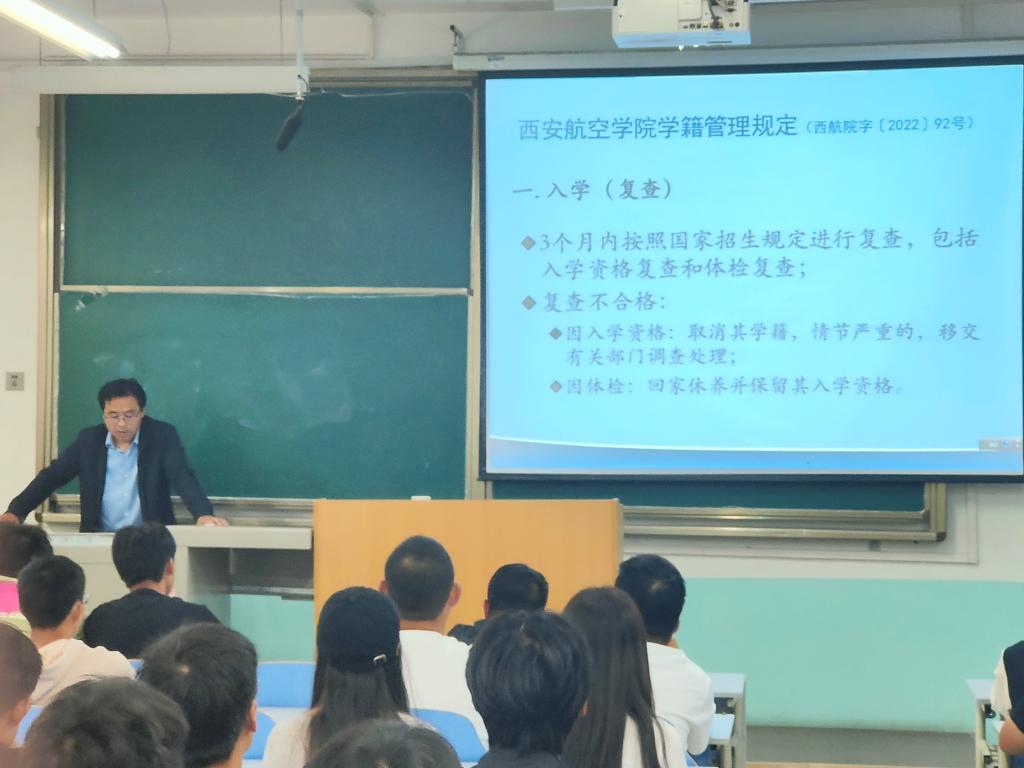 9月20日,学生工作办公室教师就学校教学管理相关规定、校规校纪以及学生管理工作等向新生做了详细说明,强调学生既是享受权利的主体又是履行义务的主体,各位同学在校期间一定要遵守学校的规范和制度,在此基础上不断锻炼和提高自己的能力,争做文明优秀的大学生。
