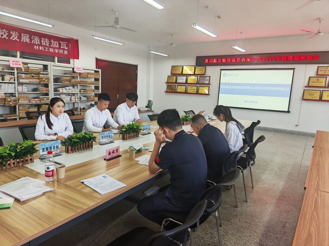 9月9日,贵阳航发精密铸造有限公司专场招聘会在世界杯体育官方网站四号实验楼4309教室顺利召开。本次活动旨在为世界杯体育材料专业学子搭建优质就业通道,同时助力企业精准引进高素质人才,现场交流气氛热烈,成效显著。