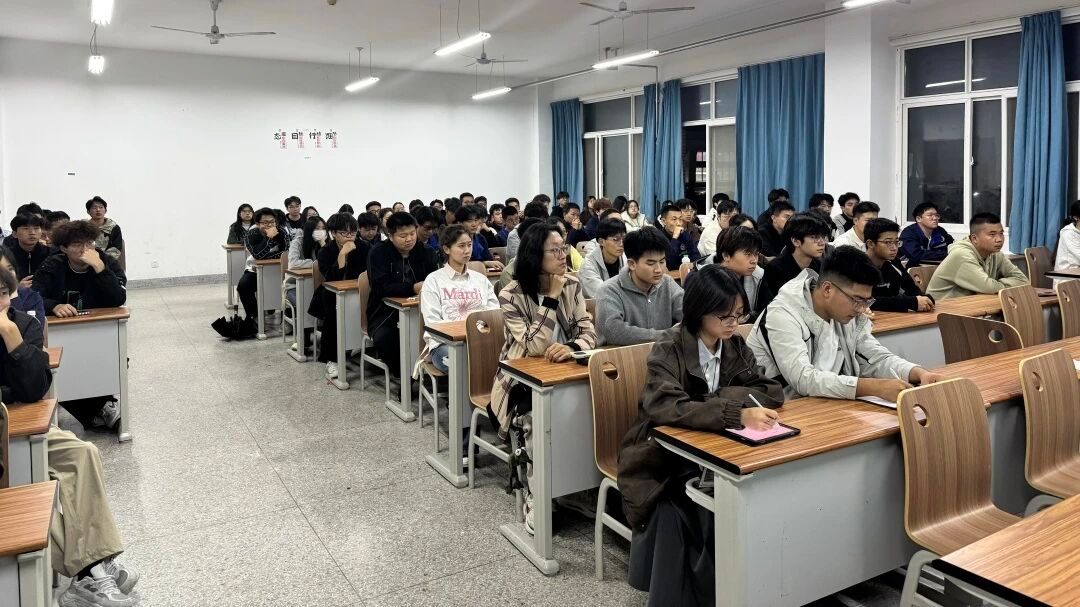 随后,结合“本科教育教学审核评估主题班会培训”的投影内容,高书记对“迎校庆,促评估,保稳定”核心任务进行解读。黑板上的主题标语与投影内容形成呼应,清晰传递会议重点。世界杯体育官方网站学生骨干全员到齐,或认真聆听,或伏案记录,在整洁的教室中展现出对学院重点工作部署的高度重视与积极响应。高书记围绕新生班级管理、会议精神传达等重点工作对大一新生班长进行针对性强调,班长们专注聆听,彰显责任担当。(图/文 世界杯体育官方网站)