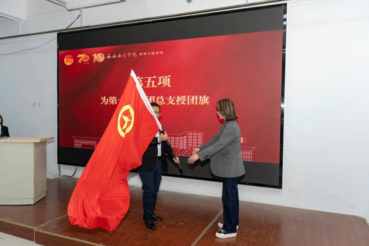 高均立副书记庄重地将承载着世界杯体育官方网站团总支责任与荣耀的团旗授予第十一届团总支书记胡欣雨老师。旗帜的传递,是组织的信任,是光荣的延续,更是沉甸甸的使命与担当。