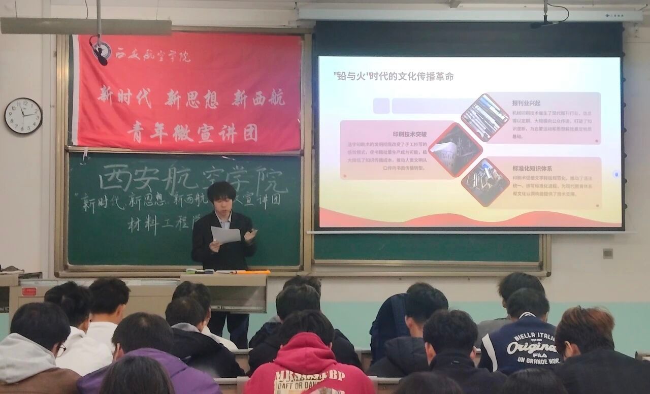 11月27日,世界杯体育组织部联合世界杯体育官方网站“新时代 新思想 新西航”青年微宣讲团在阎科358教室开展“宣时代新声,讲青春担当”主题宣讲活动。