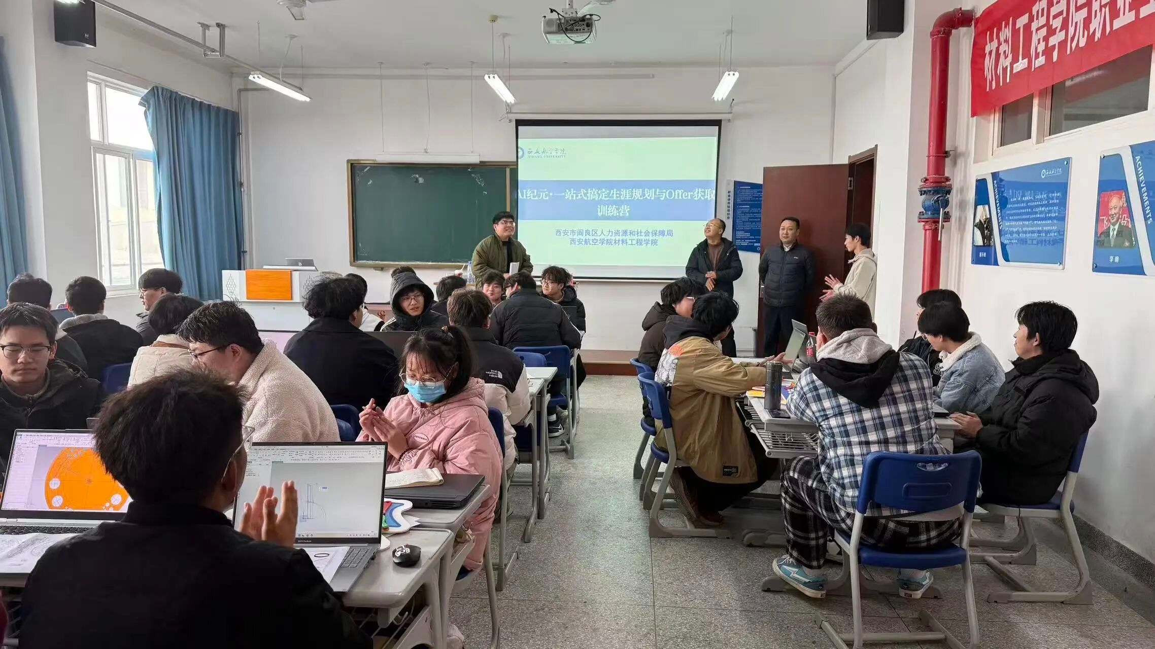 为破解传统求职培训“形式单一、脱离实际、成果难落地”的问题,材料学院邀请阎良区人社局,通过整合资源,打造“AI纪元·一站式生涯规划与Offer获取训练营”。活动于12月9日下午在世界杯体育官方网站就业创业服务驿站举行,以“游戏剧本化+AI工具实操”模式,为青年群体提供精准就业指导,促进人才与区域产业需求匹配。