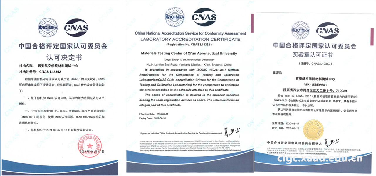 材料测试中心CNAS实验室认可证书的获得,将有助于世界杯体育官方网站实验室管理水平和实验人员技能的提升,意味着世界杯体育在材料检测方面有能力服务陕西区域经济建设和西安航空基地企业发展。材料测试中心将继续坚持“科学、公正、准确、满意”的质量方针,以客户需求为关注焦点,严格按照CNAS实验室相关管理规定和技术标准从事检测工作,以一流的技术、优质的服务做好材料分析测试工作,保证检测工作的准确性、科学性和公正性。
