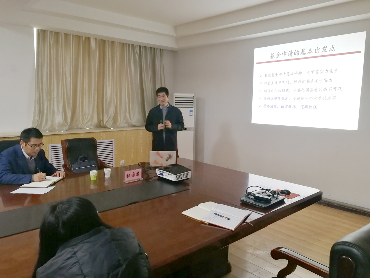 张国君教授报告的题目为《国家自然科学基金申报体会》。他指出,首先,基金项目申请要包括几个出发点:公平、实力、创意和整体观念,写作过程中要有清晰的思路,语言尽量精炼、逻辑性强。其次,基金项目申报需要具备三个方面的因素:一、学术思想的创新;二、较好的研究基础;三、掌握一定的写作技巧。随后,针对基金写作的题目拟定、摘要书写、立项依据、研究内容、研究目标、拟解决的关键科学问题、技术路线和实验方案等7个方面进行了详细说明。报告结束后,教师们分别就自己对国家自然科学基金项目申请的一些疑问与张国君教授进行了交流,张教授对大家的问题进行了详细的解答。