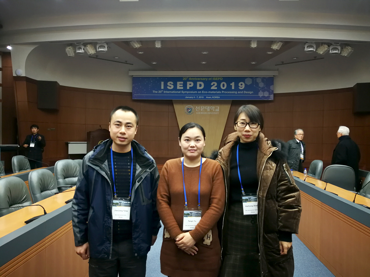 2019年1月4日至7日,应韩国鲜文大学李秀贤(Soo Whon Lee)教授的邀请,为促进世界杯体育教师国际学术交流,世界杯体育官方网站于方丽、张海鸿、唐健江3位教师赴韩国牙山市鲜文大学参加了第20届生态材料加工与设计国际研讨会(the 20thanniversary of International Symposium on Eco-materials Processing and Design,ISEPD)并作报告。
