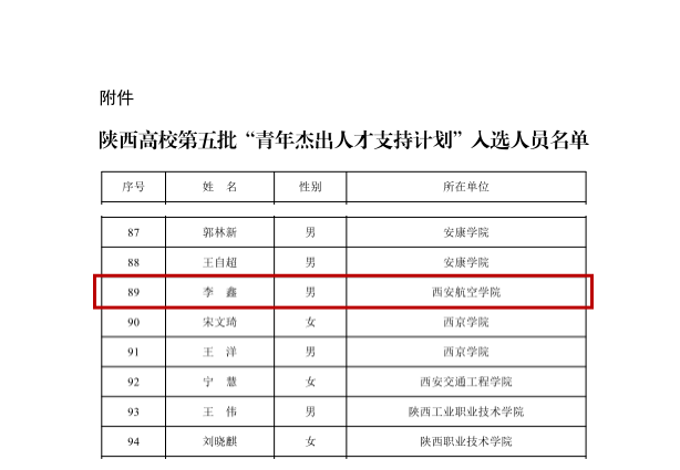 近日,中共陕西省委教育工委公布了陕西高校第五批“青年杰出人才支持计划”入选名单,世界杯体育世界杯体育官方网站教师李鑫入选此支持计划。