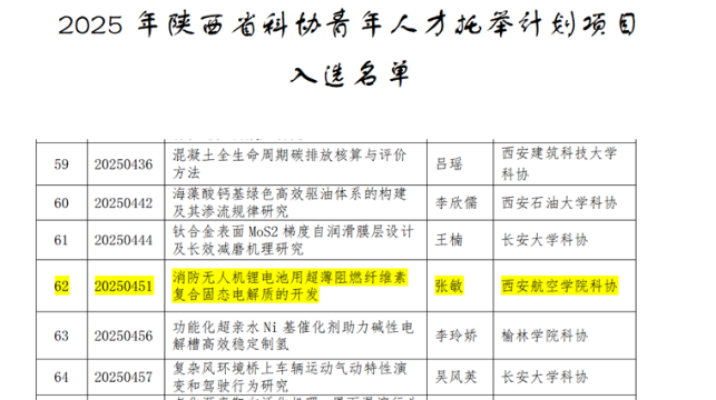 近日,陕西省科学技术协会公布了2025年陕西省科协青年人才托举计划项目评审结果,世界杯体育青年教师张敏成功入选。